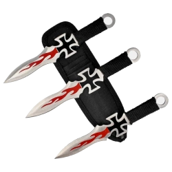 Black Cross Set 3 pcs 3Cr13MoV - a set of dart throwing knives with full tang construction, made of stainless steel and wrapped in black paracord. Comes with a nylon carrying sheath with compartments.