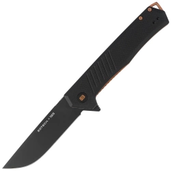 RK-01 Black PA66 Polyamide, PVD large rescue folder. Blade made of Japanese AUS-8 stainless steel with anti-reflective PVD coating. Handle made of polyamide PA66 for a secure grip. Cutting blade for straps and ropes on the back of the handle.