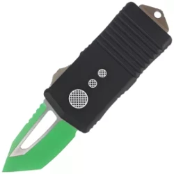 Exocet T/E Jedi Master Black Aluminum, Green, utility automatic knife with money clip function. Perfectly made, Handle made of aluminum, 1.98” blade made of Böhler M390 steel, legal in many parts of the world. An excellent EDC accessory!