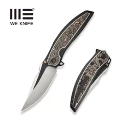 Quinseris Bronze Titanium/Shredded Carbon Fiber, Black Stonewashed, a large EDC folder, utilitarian and elegant. Comfortable titanium and carbon fiber handle, head made of excellent Böhler M390 steel, Nested Frame Lock.