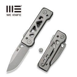 Acuminal Flamed Titanium, Polished Bead Blasted large EDC folder by WeKnife. Ergonomic titanium handle for comfortable grip, excellent Vanax steel blade. Opened with a quick flipper flipper, ceramic bearings guarantee smooth operation of the mechanism.