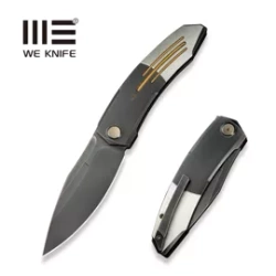Sine Wave Black Titanium, Black Stonewashed large WeKnife EDC folder. Ergonomic titanium handle for a comfortable grip, premium Böhler M390 steel blade. Opens swiftly with a flipper tab, ceramic bearings ensure smooth and reliable mechanism operation.
