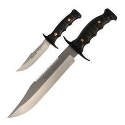 7221-P set of two knives (Kangaroo) - main knife (7221) with blade length 220 mm and auxiliary knife (7101 MT-Bowie) with 100 mm blade. Bowie profile blades made of 420H steel are covered with a non-reflective Satin Finish coating (semi-matt).