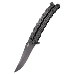 Third Decor Habitat Balisong Chain Black Stainless Steel, Black 420 Butterfly Knife (K2819BK)