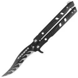 Flamas Black Aluminium, Black (Single Edge), a sturdy butterfly type folding knife from the Spanish company Martinez Albainox. Black coated aluminium handle arms, blade with single edge.