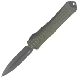 Cleric II D/E OD Green Aluminum, Black DLC. An OTF automatic knife that stands out among the rest. D/A working automatic with a slim profile with super smooth opening and closing action. Customized by Tony Marfione Jr, Heretic Knives