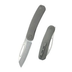 Steelhead Gray Titanium, Satin compact folder from the Perez workshop. Blade made of excellent Böhler M390 steel, handle made of titanium with cross-hatching. Opens with a flipper or a groove in the handle. Secure liner lock.