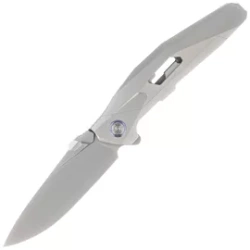 Shadow Clip Point Gray Titanium, Satin, an engineering display by the Rike Knives. A large folding knife based on a titanium exoskeleton and an outer casing made of a single piece of titanium. Blade of Böhler M390 steel. Unbelievable quality!