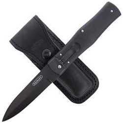 Predator Blackout Black ABS, DLC, Mikov automatic spring knife with black DLC blade made of N690 steel. Solid construction, two strong opening springs, characteristic click when opening distinguish Predator from other spring knives. Leather case