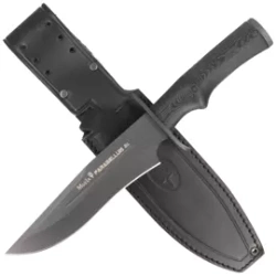 Parabellum Black Micarta, Black, a large and durable knife aimed at military or survival enthusiasts. Perfectly balanced with a stainless steel blade provides tremendous cutting power. Ergonomically profiled handle. Will not fail in any situation!