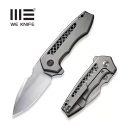 Harpen Grey Titanium, Hand Rubbed Satin, designed by Michael Burch for WeKnife, a compact, easy-to-carry folding knife. Titanium on the handle, ceramic ball bearings, excellent CPM 20CV steel. Unbelievable cutting properties!