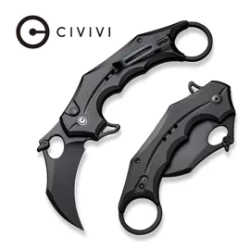 Incisor II Black Aluminum, Black Nitro-V is a reissue of WeKnife's first karambit. Knife combines the advantages of the Button Lock mechanism with 3 different options for opening blade. Using a flipper, thumb hole and quick opening against edge of pocket.