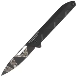 Ferrum T Black Warfare Aluminium, Geotech Camo strongly built folding knife from Extrema Ratio. Proven solutions from the ER, profiled anticordalaluminium handle, proven N690 steel for the blade, Ball bearings for a smooth opening!