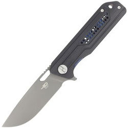 Scimitar Black G10, Gray / Satin, a handy EDC folder with a slightly exotic look. Made with characteristic Bestech care. G10 facings on the handle, blade made of proven D2 tool steel, all at an excellent price!