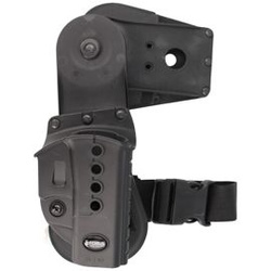 GL-2 ND EX (Thigh Rig) kabura Fobus (Roto) z panelem udowym prawa. Do Glock: 17, 19, 22, 23, 31, 32, 34, 35,41. ND/Evolution-2 kabura z dodatkową śrubą regulującą siłę docisku kabury. Wpływa to na siłę z jaką broń jest trzymana w kaburze lub jest dobywana