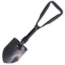 M9807 Shovel Black Aluminium, Black, klasyczna saperka składana z zębami tnącymi na ostrzu i uchwytem w stylu saperki piechoty. Wykonana ze stali i aluminium, wyposażona w pokrowiec camo – niezastąpiona w zastosowaniach survivalowych i terenowych.
