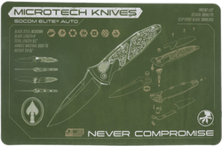 Socom Elite Auto OD Green Display Mat – profesjonalna mata prezentacyjna z grafiką modelu Socom Elite Auto OD Green, wykonana z trwałego tworzywa PVC, odporna na zabrudzenia i idealna do prac serwisowych z nożami.