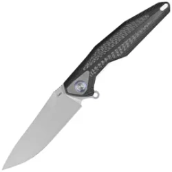Chilin Black Carbon Fiber, Black Stone Washed PVD, elegancki projekt Jespera Voxnaesa o charakterystycznej klindze w kształcie liścia. Doskonała stal narzędziowa M398, odporna, carbonowa rękojeść w typowym dla Jespera utylitarnym i nowoczesnym stylu!