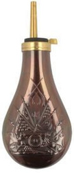 DP523-44, prochownica firmy Davide Pedersoli dozownikiem. Przeznaczona do rewolwerów czarnoporochowych Colt w kalibrze .44. Naważka prochu 24 grs. Wykonana z lakierowanej miedzi, z motywem sceny batalistycznej oraz dozownikiem z mosiądzu.