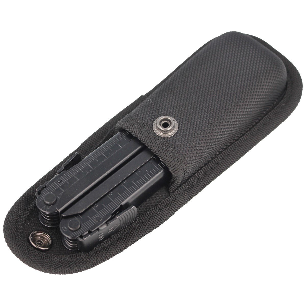 Case - light, made of black nylon. A holster closed with a Prym latch protects the miltitool well against falling out. Enables the sheath to be attached to the M.O.L.L.E. or carried on the belt or gear in a horizontal or vertical position.