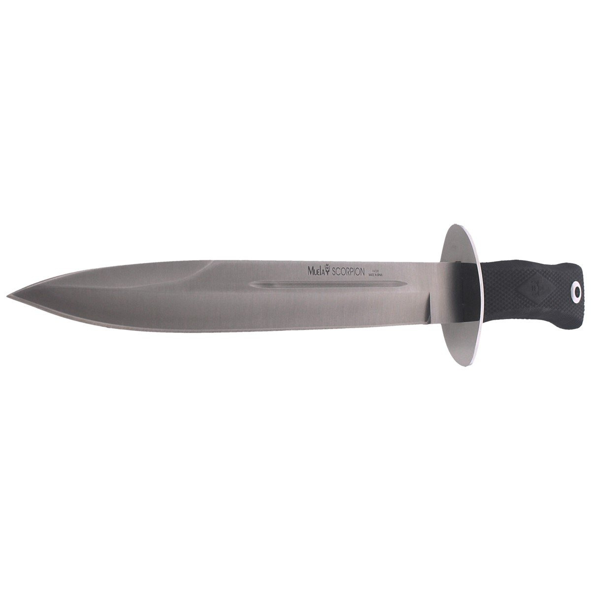 - Muela SCORPION-26G solid robust steel molybdenum-vanadium knife with full-tang construction will withstand work in all conditions. False blade covered with a non-reflective Satin Finish (semi-matte). Cladding elastomer pouch leather.