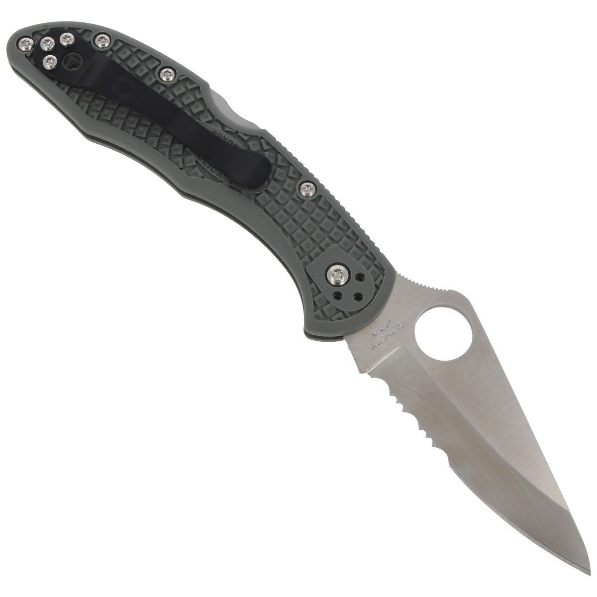 Combination Edge - (partly serrated) often used in tactical, rescue and survival knives. This unique Spyderco blade consists alternately of one large and two small teeth called „two-step”. This pattern increases the cutting edge length by up to 24% compared to the straight edge. Ideal for cutting hard materials, plastics and fibrous materials.