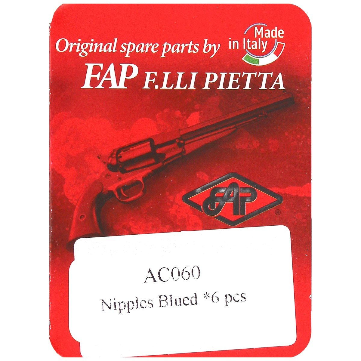• AC060, a set of 6 fireboxes (Nipples Blued) for Colt and Remington black-rifle revolvers made by Pietta Arms. Important! When replacing, it is advisable to apply copper grease to the threads of the chimney to avoid baking...