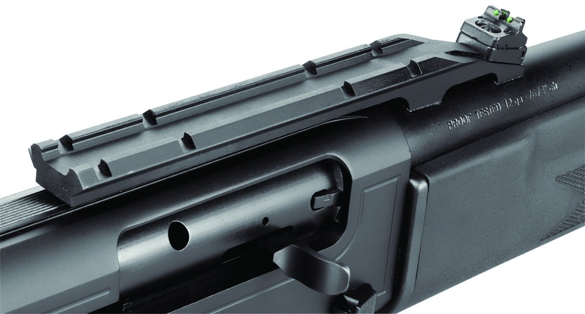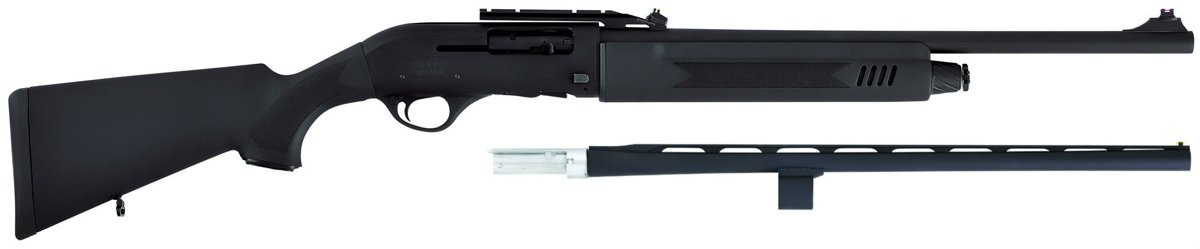 - Tactical, hunting, semi-auto (semi-automatic) shotgun, with a set of two barrels: 22" (slug) with an integral 22 mm mounting rail and a 26" barrel with Hiviz SparK optical devices.
