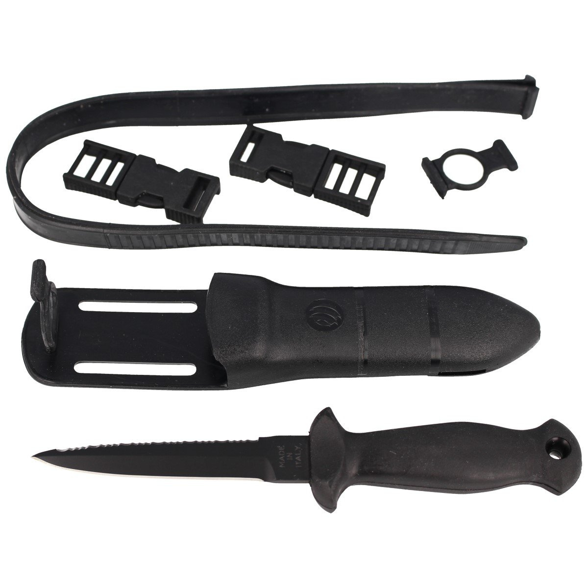 SUB 11 D2 BLACK knife for a diver with a solid steel blade Stainless Steel about full tang construction made by the Italian MAC Coltellerie Company. An indispensable piece of equipment, it works well during diving trips and onshore activities.