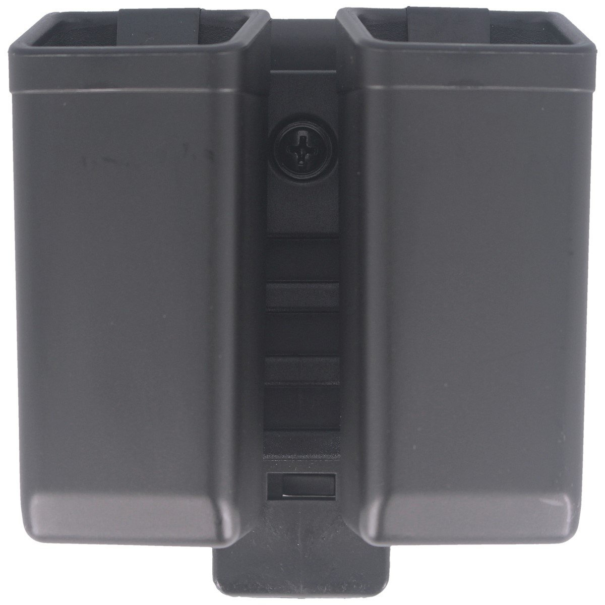 MH-MH-14 BK, double open-type pouch for two 9mm Luger / .40double-row pistol magazines with UBC-02 mount. The sophisticated shape of the internal spring that keeps the magazine in the holster makes it easy to pull it out very quickly. Made by injection method of crush-resistant polymer in black color.