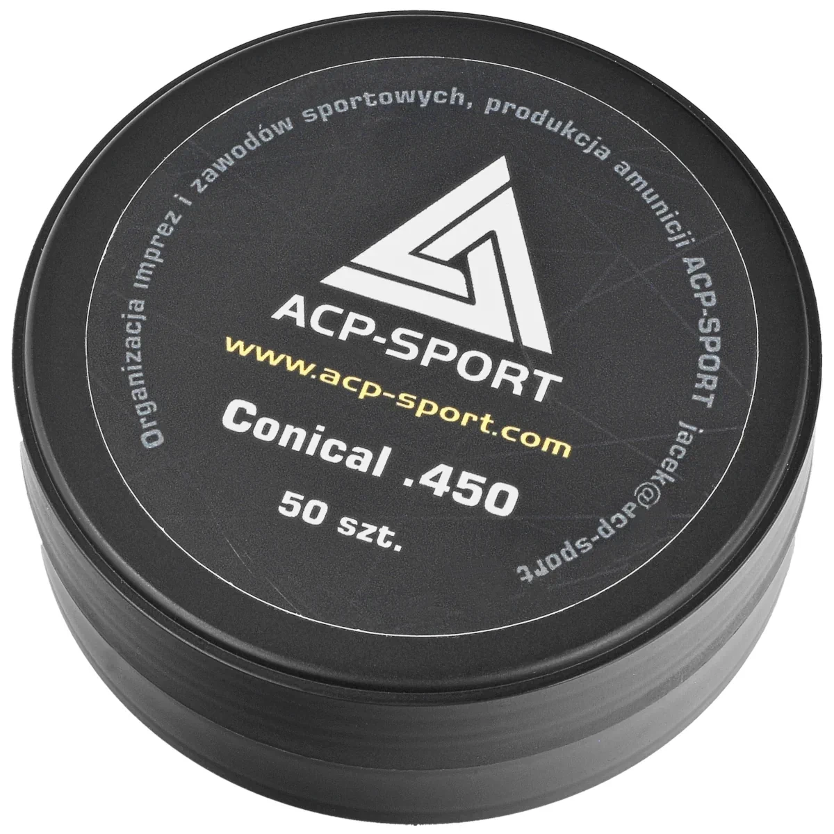 ACP-Sport Conical lead bullets (200 gr) in caliber 450 (11.46 mm) for black powder revolvers. Made of pure lead with no lead-bearing secondary materials, gaps, gaps, other defects found in lower quality products. Designed for shooting from percussion revolvers, incl. Remington, Colt, pistols and black powder rifles in caliber .44. The package contains 50 pcs.