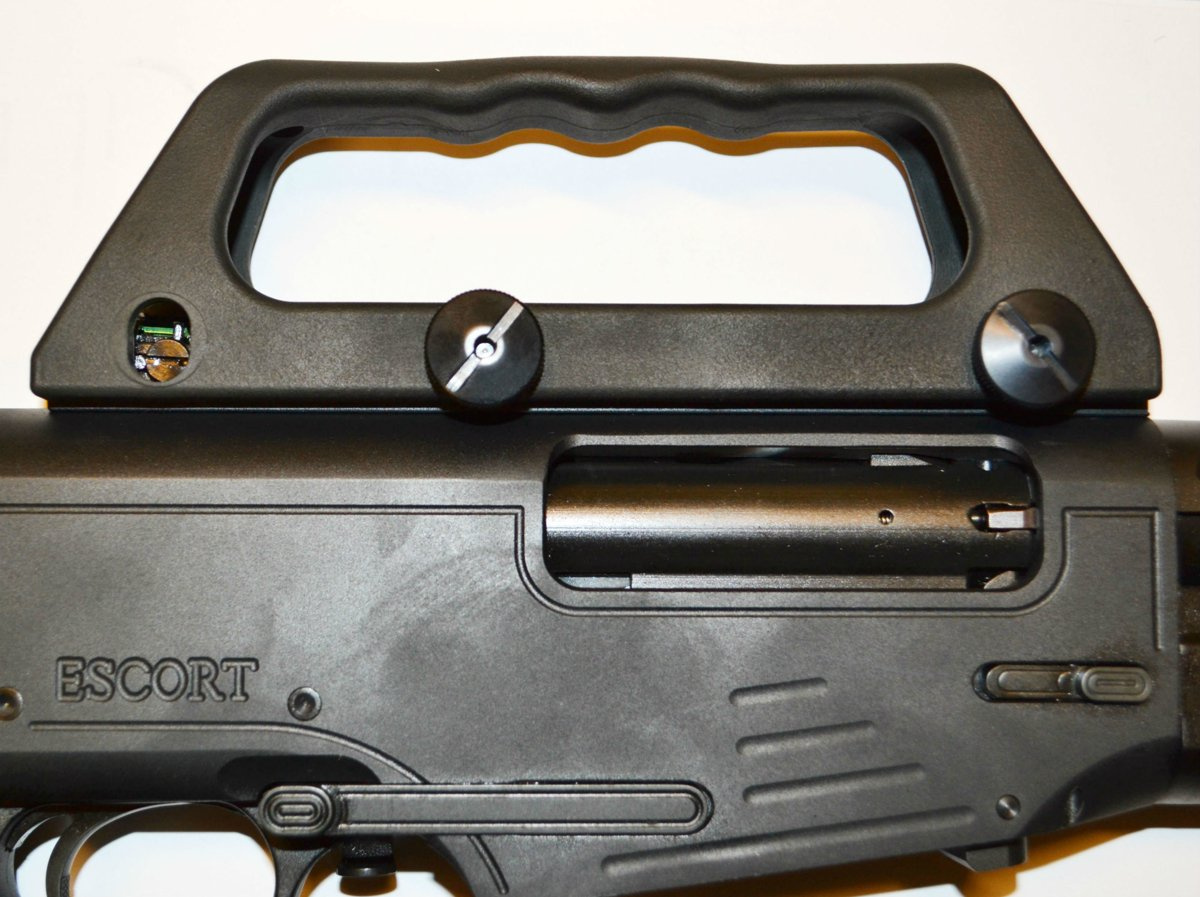 - ESCORT BM12 TS-07. Tactical smoothbore pump action rifle for intensive shooting. 20" barrel heat shield, 7-round box magazine, TS adjustable telescopic flask. For dynamic shooting, IPSC sports competition, self-defense...