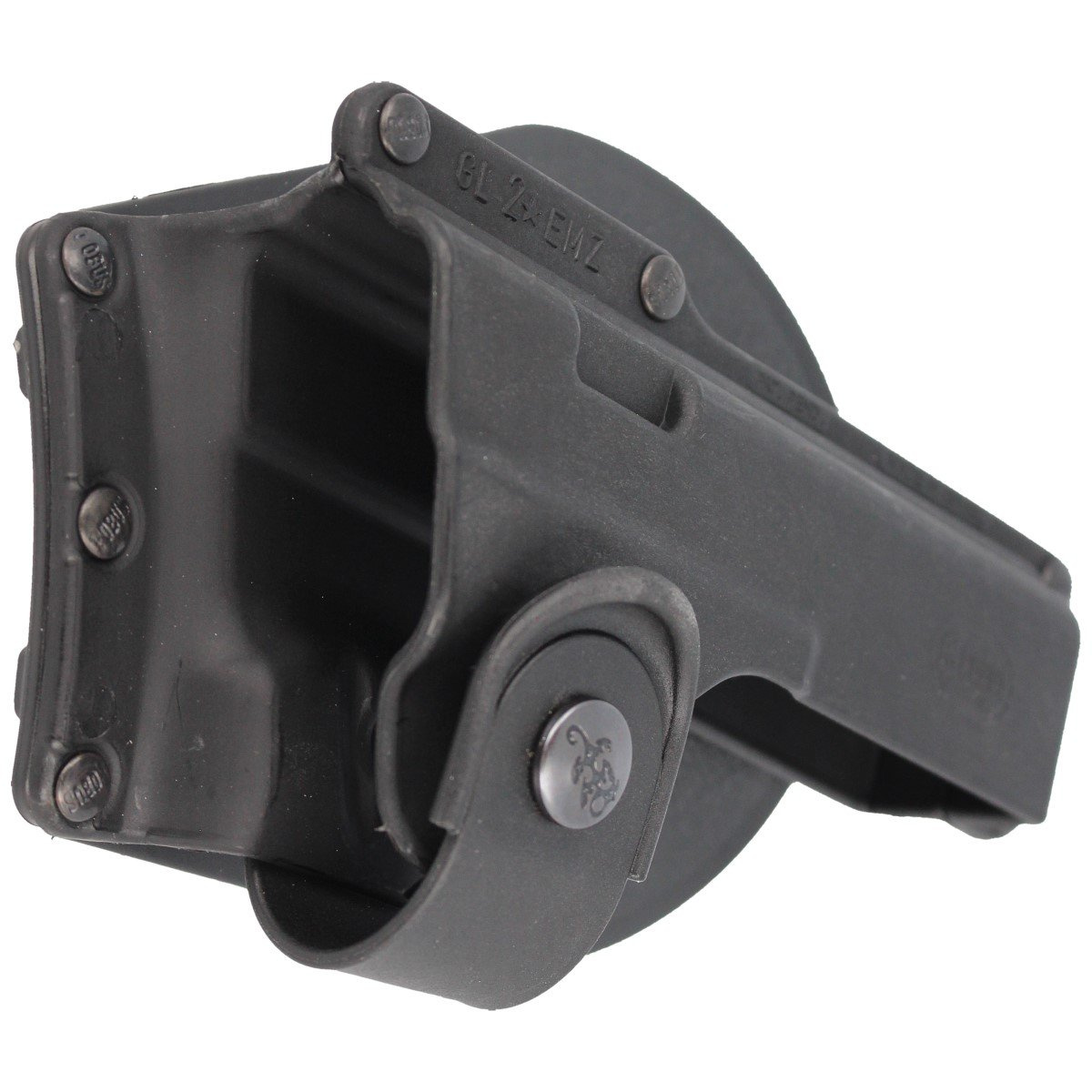 Holster Material - mold injected Nylon formula. Passive retention with a leather safety strap. Fobus passive retention system acts like a spring on the trigger guard area and holds the gun firmly in place.