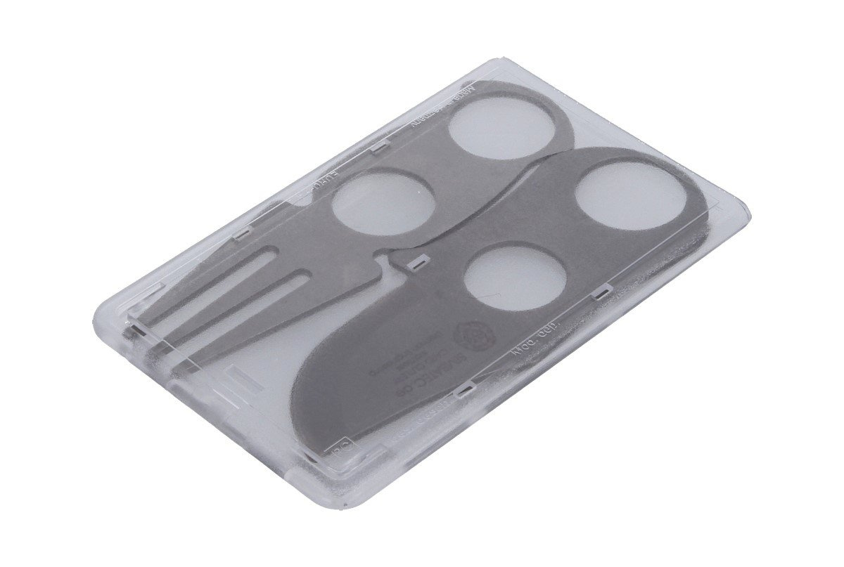 The set is packed in a transparent plastic case the size of a credit card, only 4 mm thick and weighing only 40 grams. Card dimensions: 90 x 57 x 4 mm.