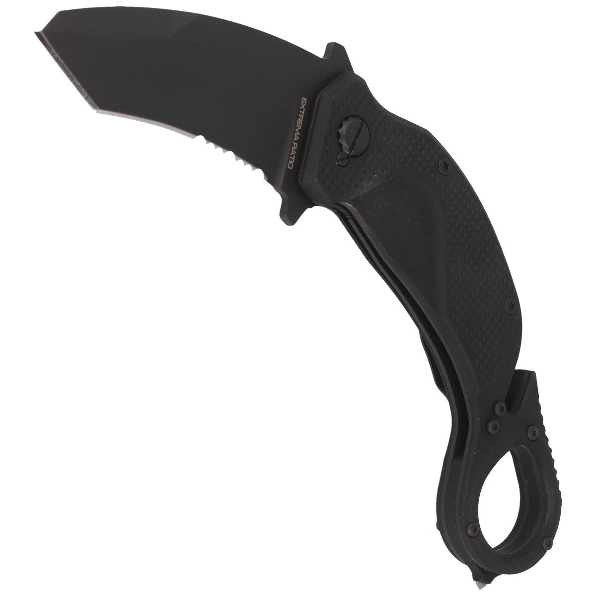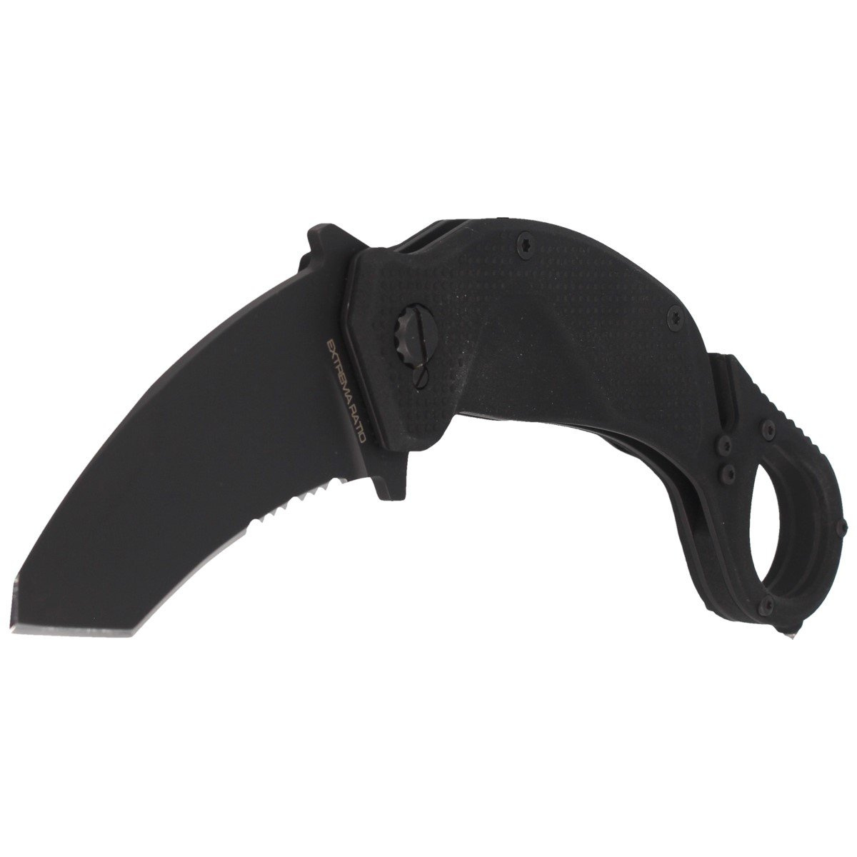 NightMare Black, highly advanced karambit and rescue knife in one. This is a project of the Italian Extrema Ratio Company. A great tool as well as an extremely effective full-size knife for professional use. The folder opens and closes slightly and smoothly. Experienced seasoned karambit users will not be disappointed.