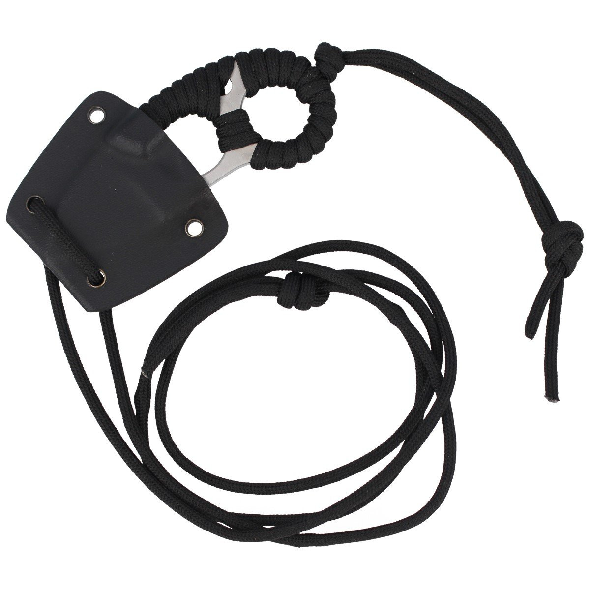 Scabbard - made of kydex material, protects the knife from falling out. Comes with a nylon cord for hanging the holster around your neck.