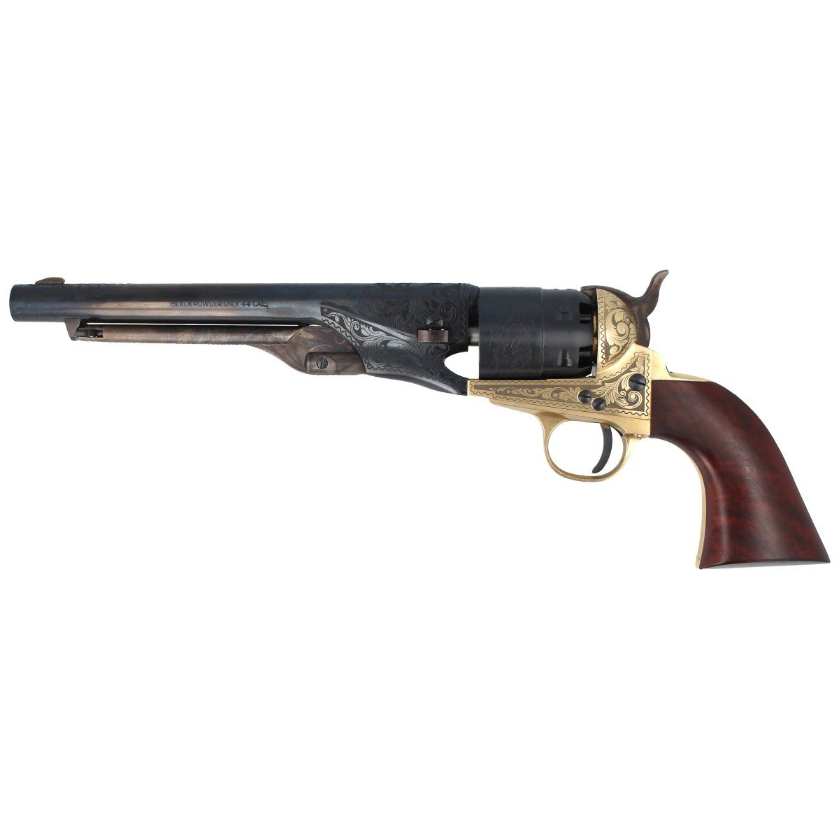 • 1860 Army DeLuxe .44 6-shot Colt cal black-rifle revolver .44. Version with 8" barrel used by the Union Army during the Civil War. Loaded with a firing pin with a brass frame engraved drum with a scene of the victory of the Second Texas Navy at the Battle
