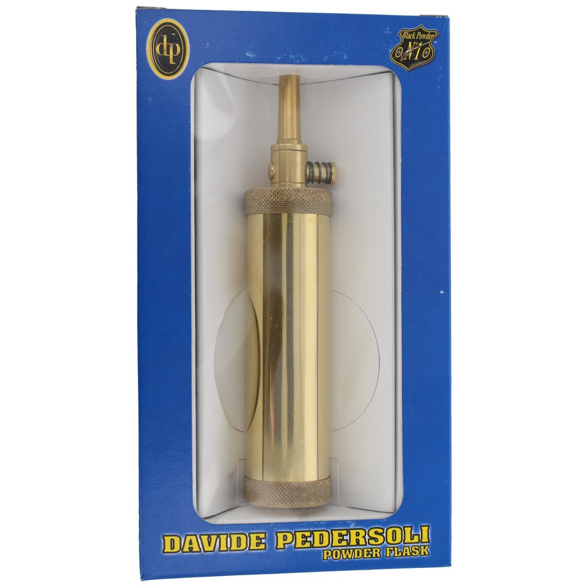 - DP533-44, made of brass a tubolar powder flask with valve from the Italian company Davide Pedersoli. Designed for .44 caliber black powder firearms. Features a replaceable 24-grain tip and a reliable spring valve.