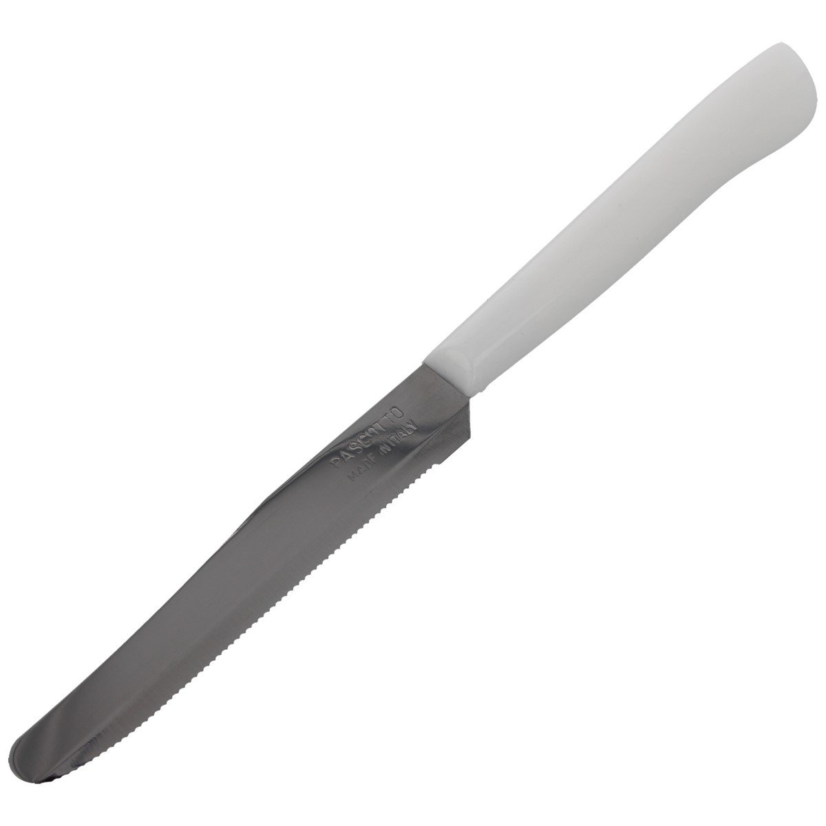 PV 208 TUBO-12 / WH (White) - a 12-piece set of universal serrated kitchen knives from the Italian brand DOI LEONS at a great price! The Arlecchini series is a collection designed for everyday use. The sharp-edged blades necessary in every kitchen make all kitchen work easier. They work well as table knives, breakfast knives and picnic knives. Made in Italy.