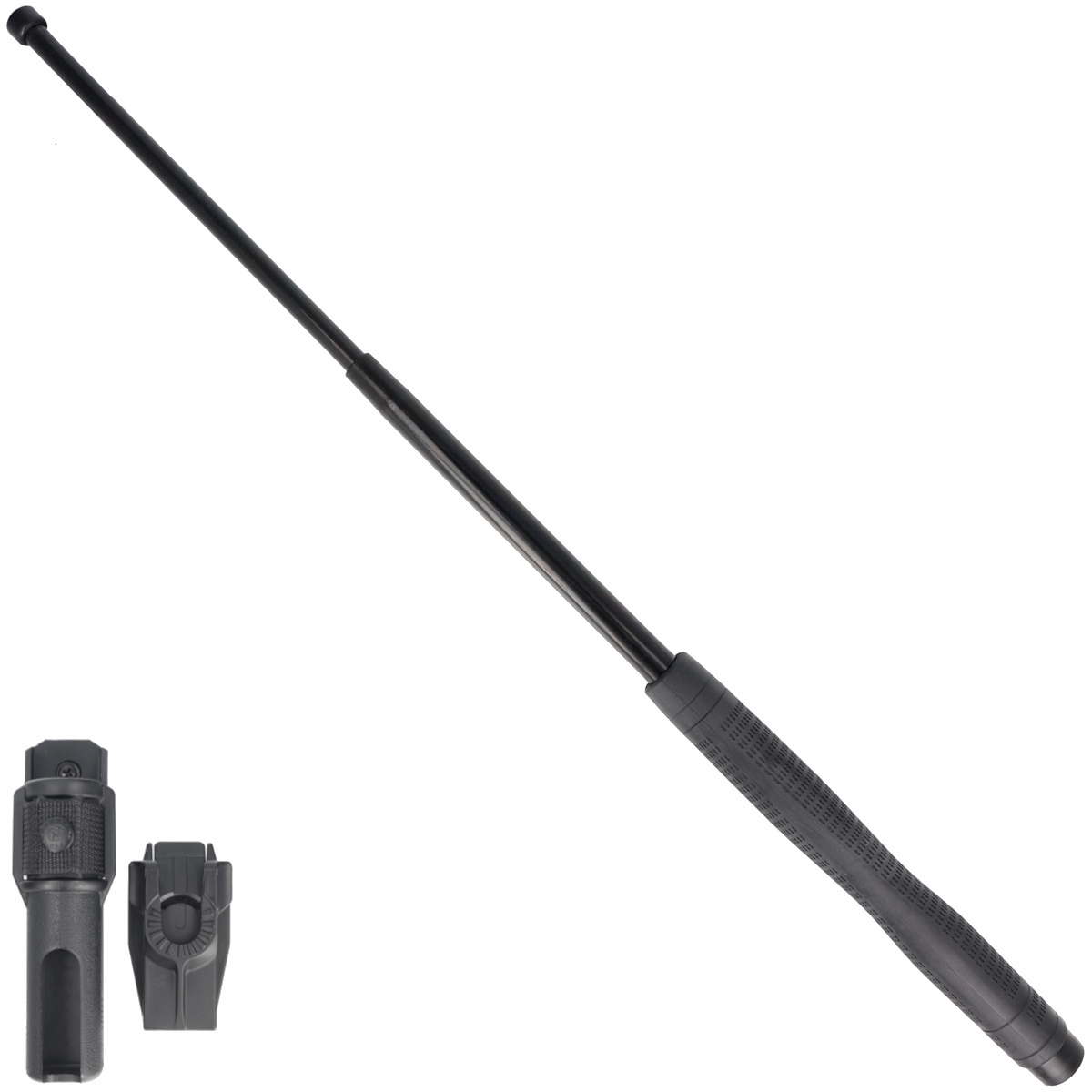 Hardened telescopic baton length 26 inches type Friction Loc companies ESP with handle type Ergonomic. Professional detachable swivel handle (360° Roto) BH-55 fitted with a mount UBC-5 (Quick Change System). The longest of the models with the longest range and the highest impact efficiency.