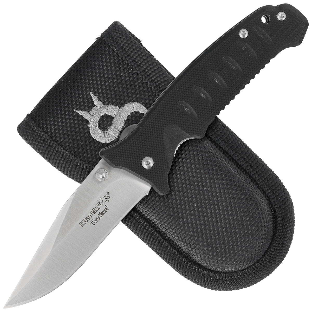 - BF-114 semi-automatic tactical knife from BlackFox. Equipped with Assisted Opening System, it opens with a slight push of the head. Low weight, spring assisted opening, G10 handle, carrying case and excellent price are the strong points of the folder