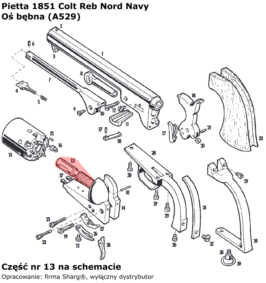 Scheme of the revolver: 1851 Colt Reb Nord Navy