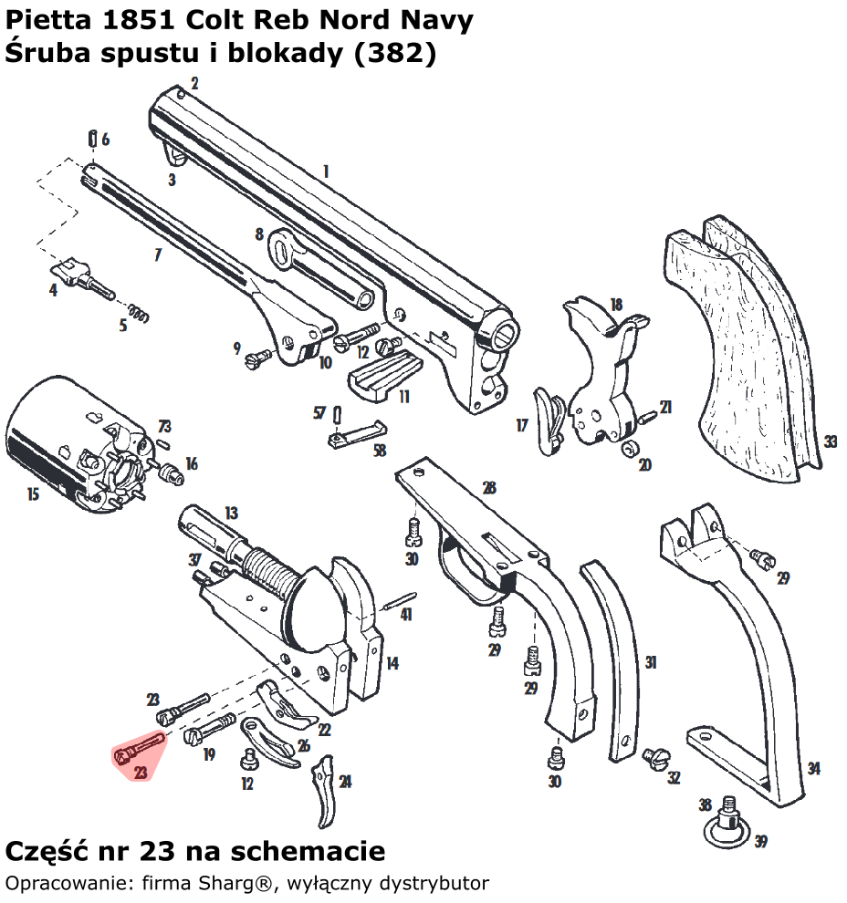 Schematic of the revolver: 1851 Colt Reb Nord Navy