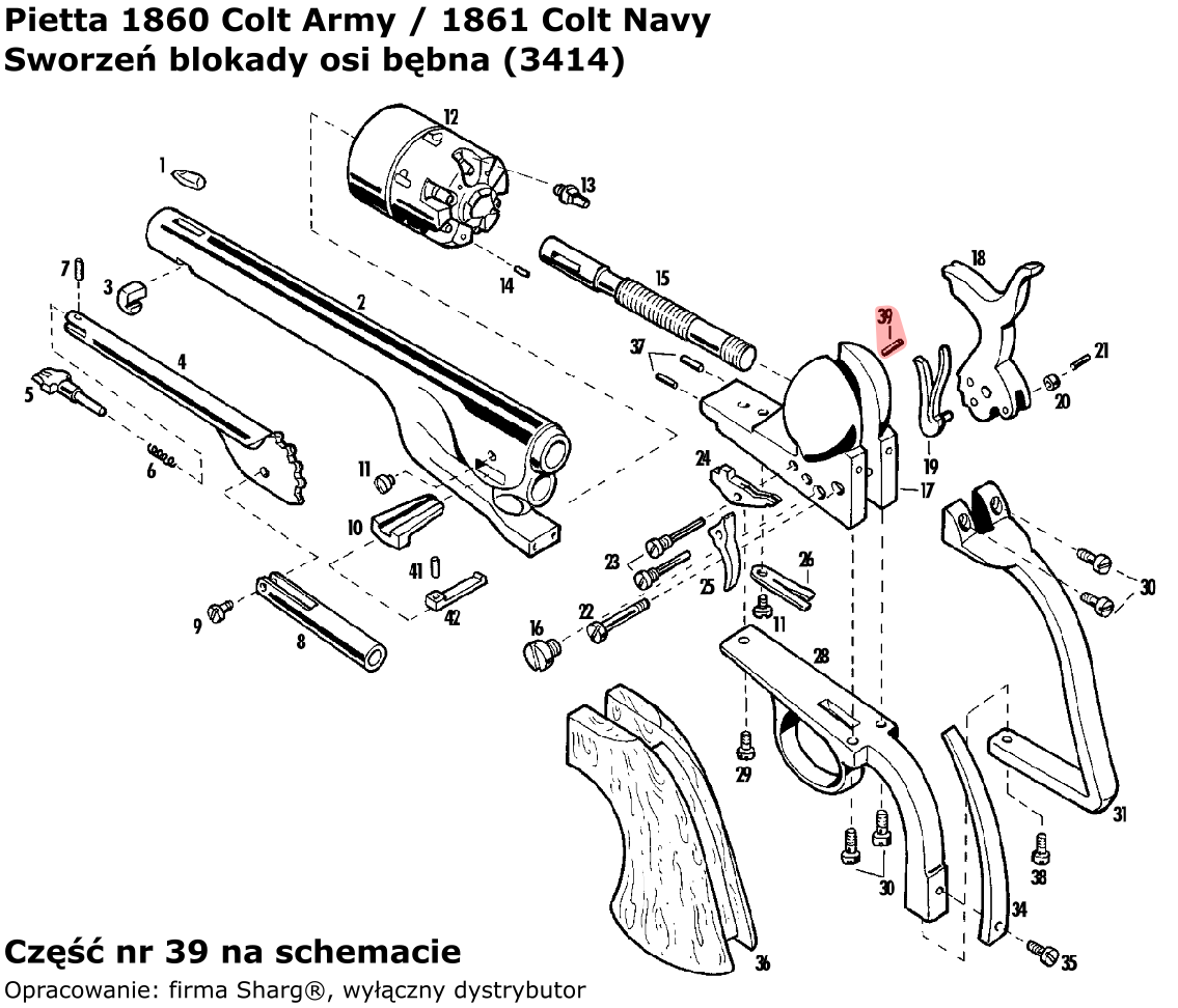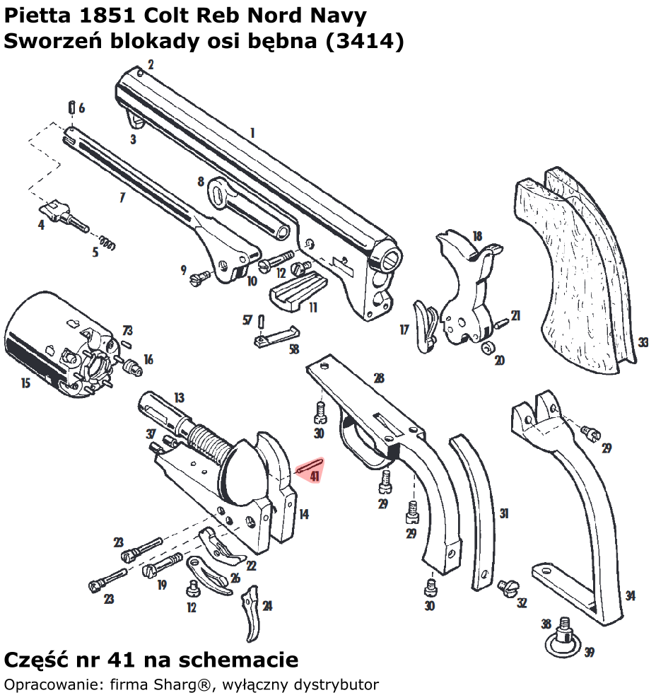Diagram of the revolver 1851 Colt Reb Nord Navy