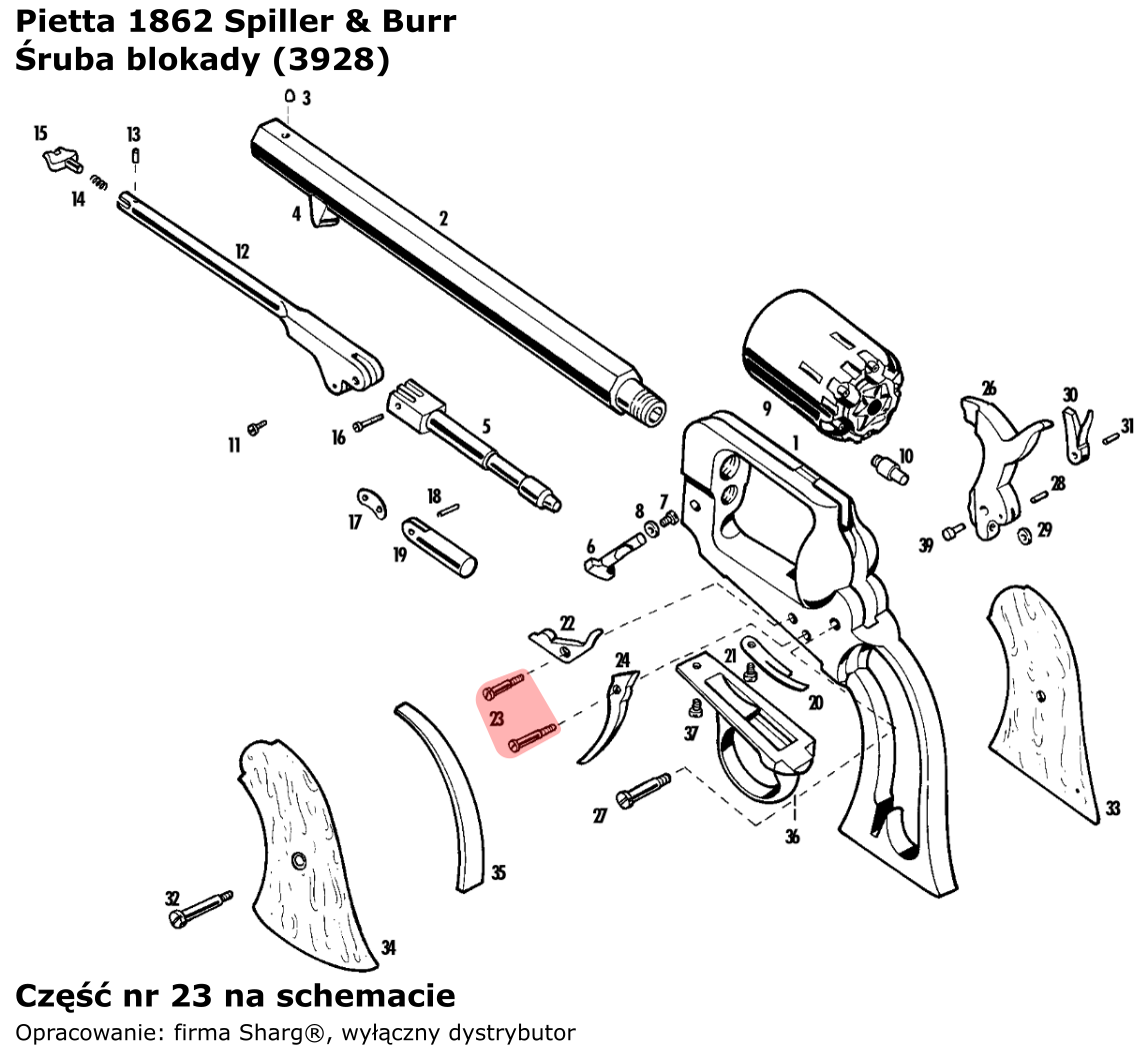 - 3928 (service) Pietta drum lock screw. For 1862 Spiller & Burr Revolver .36 cal.