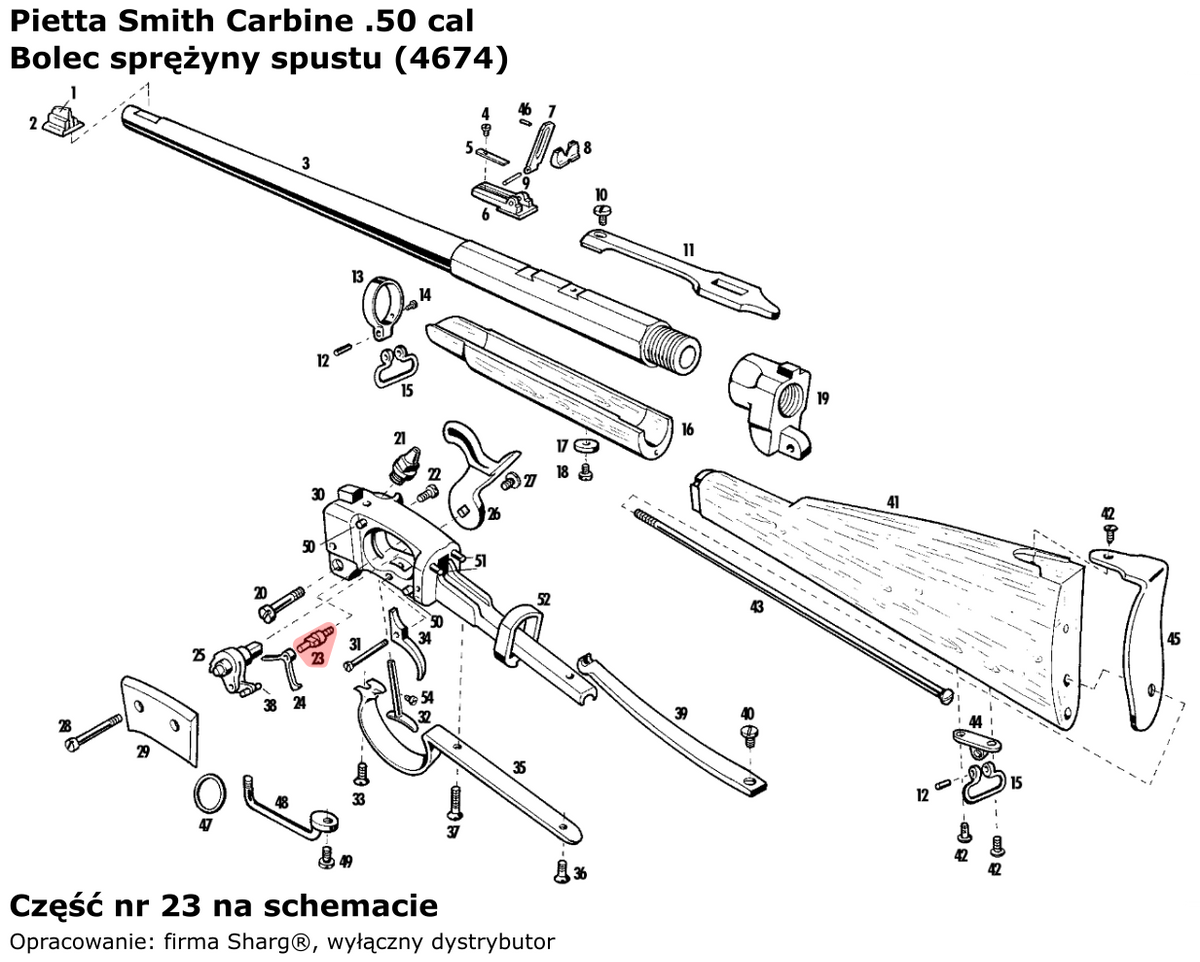 • 4674 (service) pin of the Italian Pietta trigger spring for the Smith Carbine Cavalry (SMT50) and Smith Carbine Artillery (SMTA50) black powder rifles.