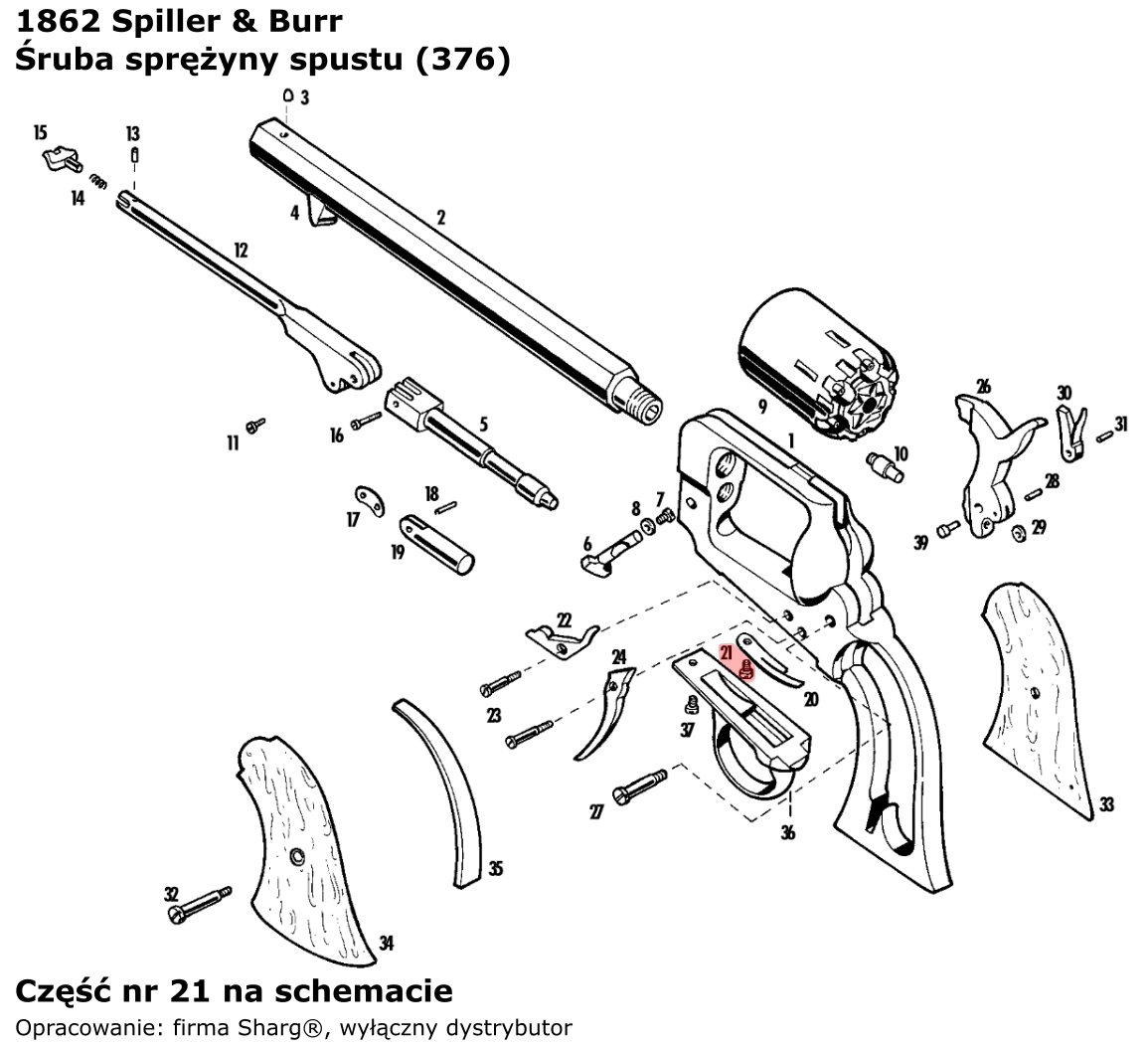 - 376 (service) trigger bolt spring for blackpowder revolvers: 1851 Colt Reb Nord Navy, 1860 Colt Army, 1861 Colt Navy, 1858 Remington New Model Army (.44 inch) / Navy (.36 inch) and 1862 Spiller & Burr by Pietta .