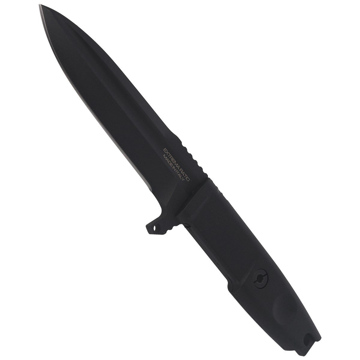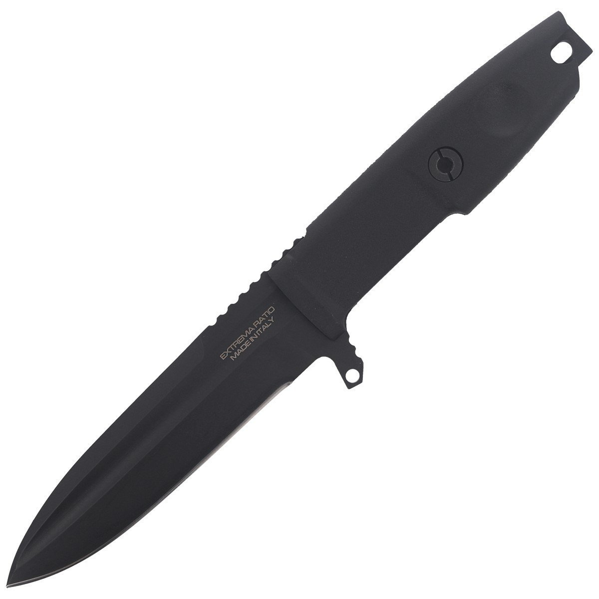 Blade - Spear Point is made of well-sharpened, durable high-cobalt N690 stainless steel with a hardness of 58 HRC, manufactured in the Austrian steelworks Böhler-Uddeholm. The blade is chemically polished with a non-reflective MIL-C-13924 BURNISHING coating. The plain Plain blade has been ground with a high flat grind. The high grind provides excellent cutting edge geometry and the false blade facilitates penetration. Upper jimping long textured thumb rest and single finger guard single sided jimping / guard to protect the hand from slipping on the blade.