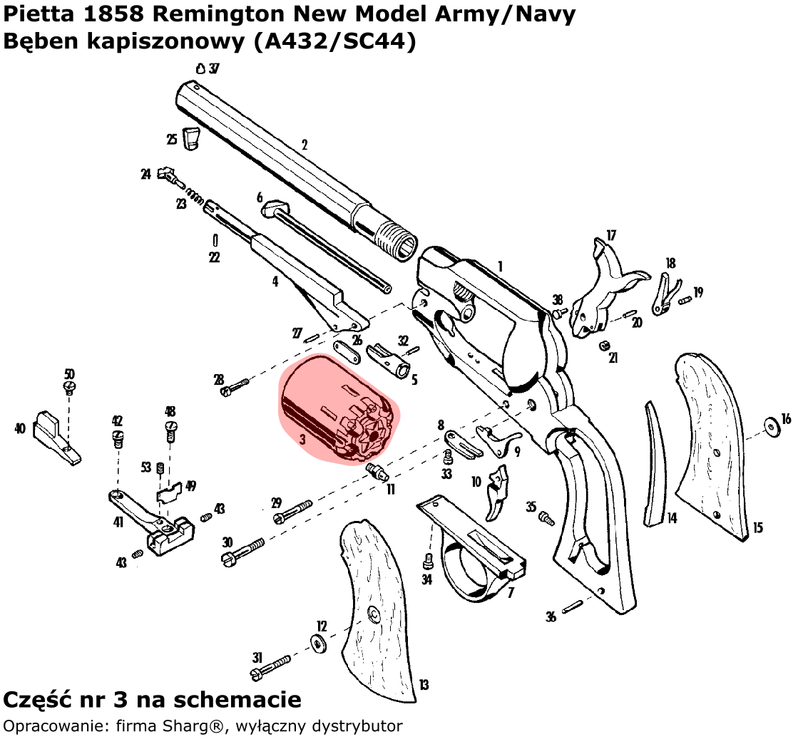 - Schematic of the revolver: 1858 Remington New Model Army / Navy