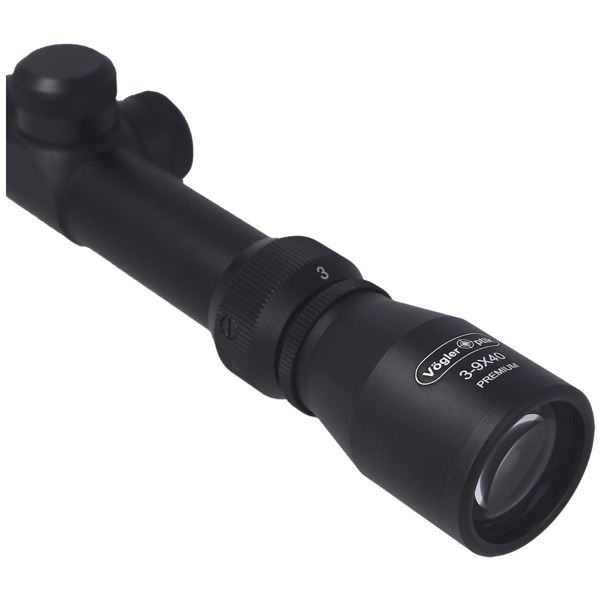 • Vogler Optik optical sight from the upgraded Premium series, with Mil-Dot reticle and 11 mm mount. Anti-reflective coatings on the glass lenses and nitrogen-filled tube ensure a bright, clear image. Magnification 3-9x with a 40 mm lens. Bestseller!